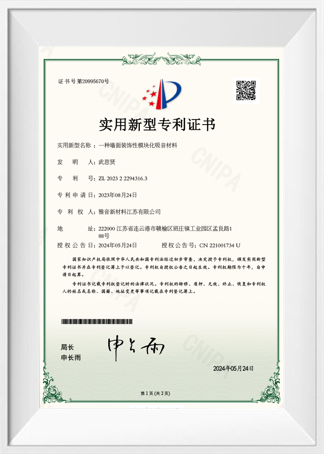 Patentes libellum de materia soni modularis absorbens parietem decorationis