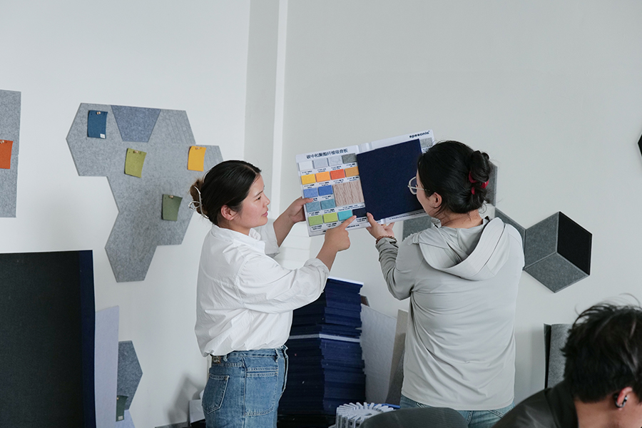 Yayin Nova Materia Jiangsu Co., Ltd. polyester fibreboard utitur cum excellenti strepitu capacitatum absorptionis, verberationem localem efficaciter moderans et qualitatem acousticae ambitus emendans. Eius environmentally amicabiliter proprietates eam praestantem materiam aedificationis viridis et neutralitatis carbonis metas efficiunt.